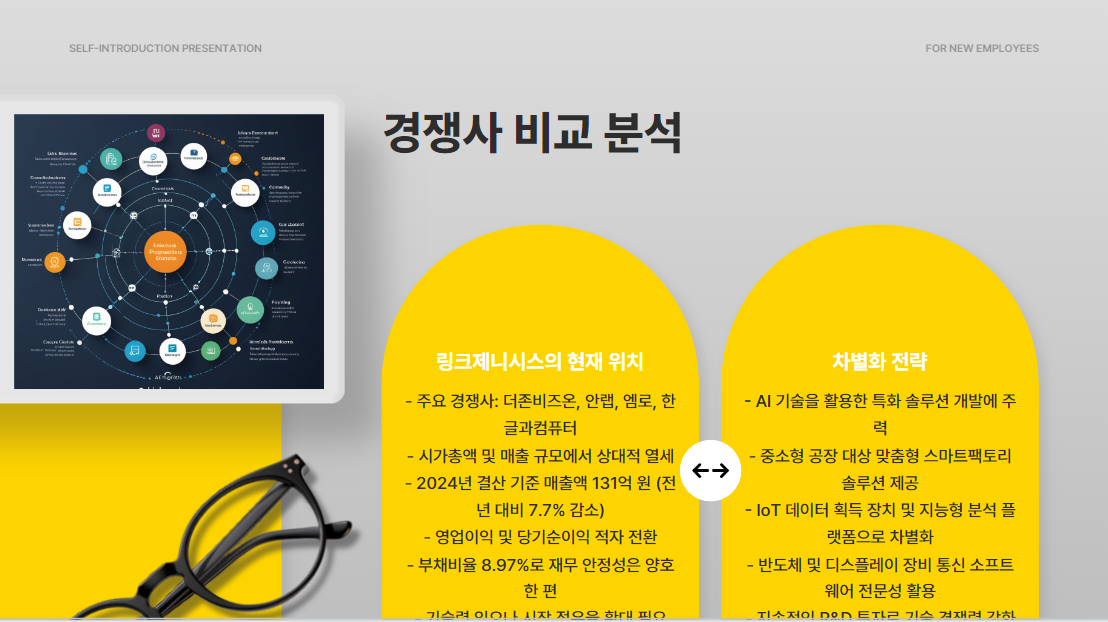 AI 기술을 활용한 특화된 솔루션 개발로 차별화를 시도하고 있으며 이는 경쟁사 대비 강점으로 작용할 수 있습니다.