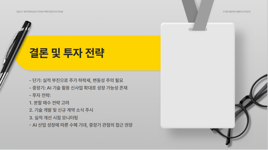 AI 기술을 활용한 제품 개발과 스마트팩토리 솔루션 확대로 향후 실적 개선에 긍정적인 영향을 미칠 것으로 기대됩니다.