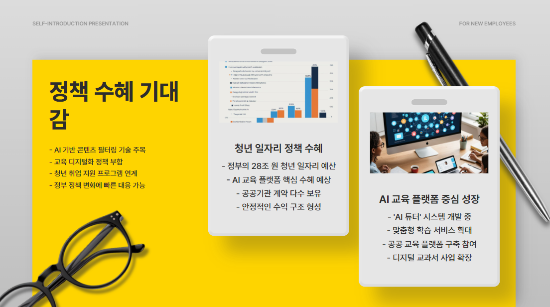 네, 교육 디지털화와 청년 일자리 정책의 수혜주입니다.