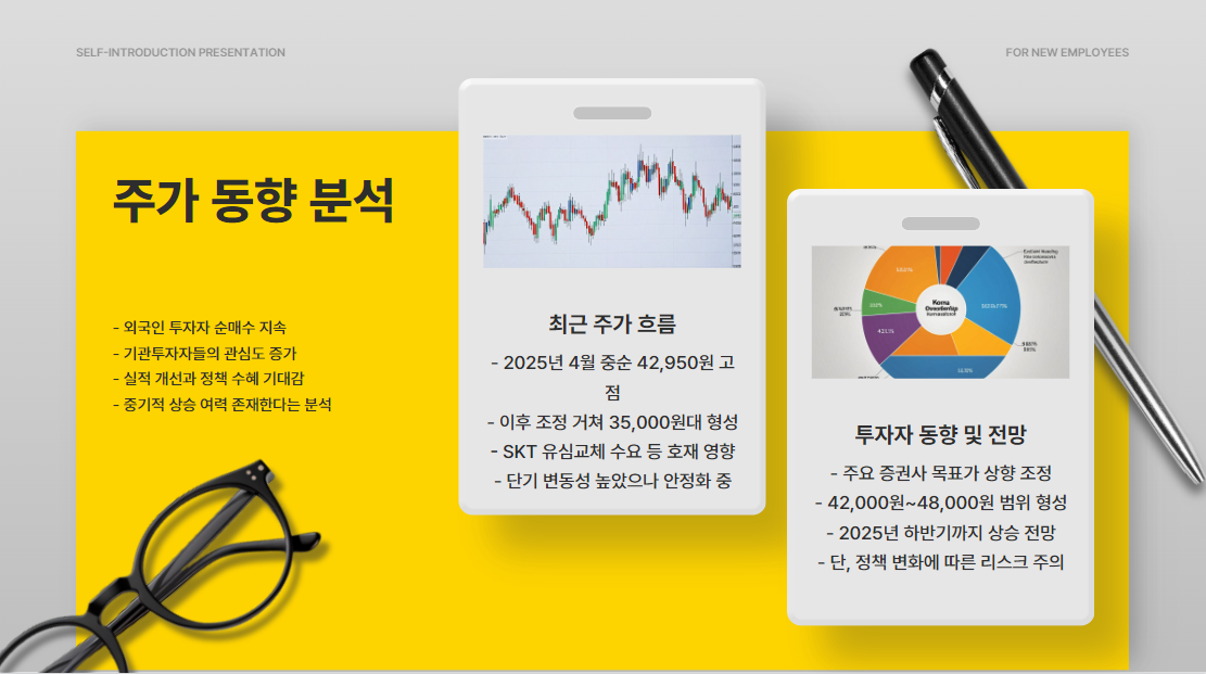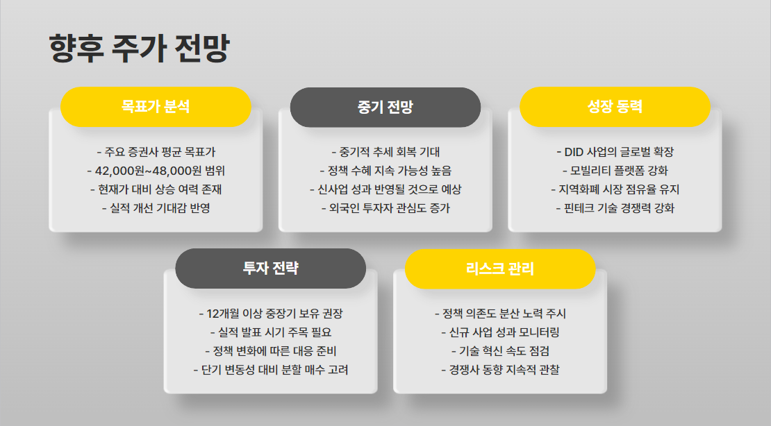 현재 주요 증권사 평균 목표가는 42,000원~48,000원으로, 단기적 반등보다는 중기적 추세 회복 기대가 반영된 수치입니다. 실적 턴어라운드와 정책 수혜가 맞물리는 한, 2025년 하반기까지는 상승 여력이 존재합니다.