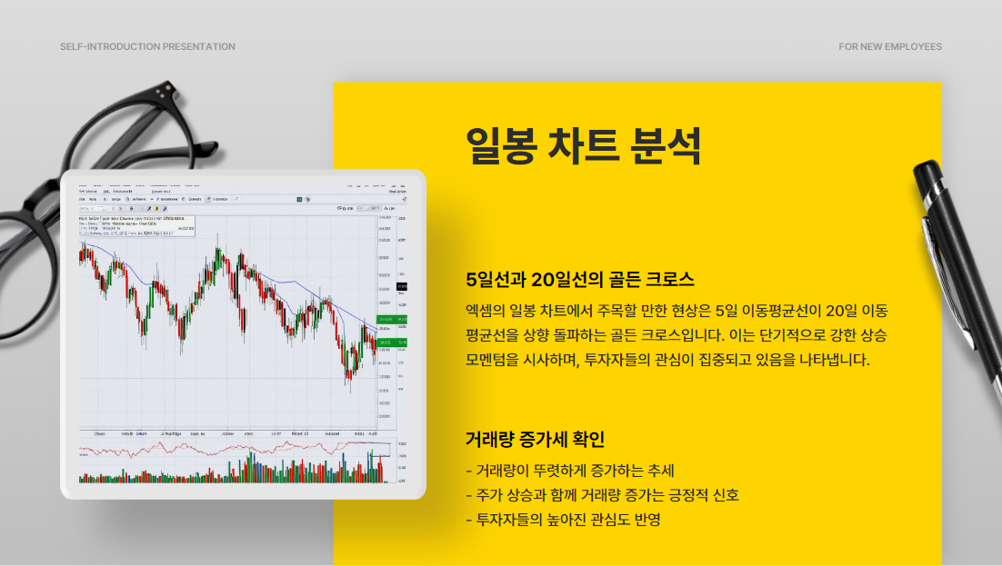 단기적으로 5일선이 20일선을 상향 돌파하는 골든 크로스를 보여주고 있으며 거래량 증가세도 뚜렷합니다.
