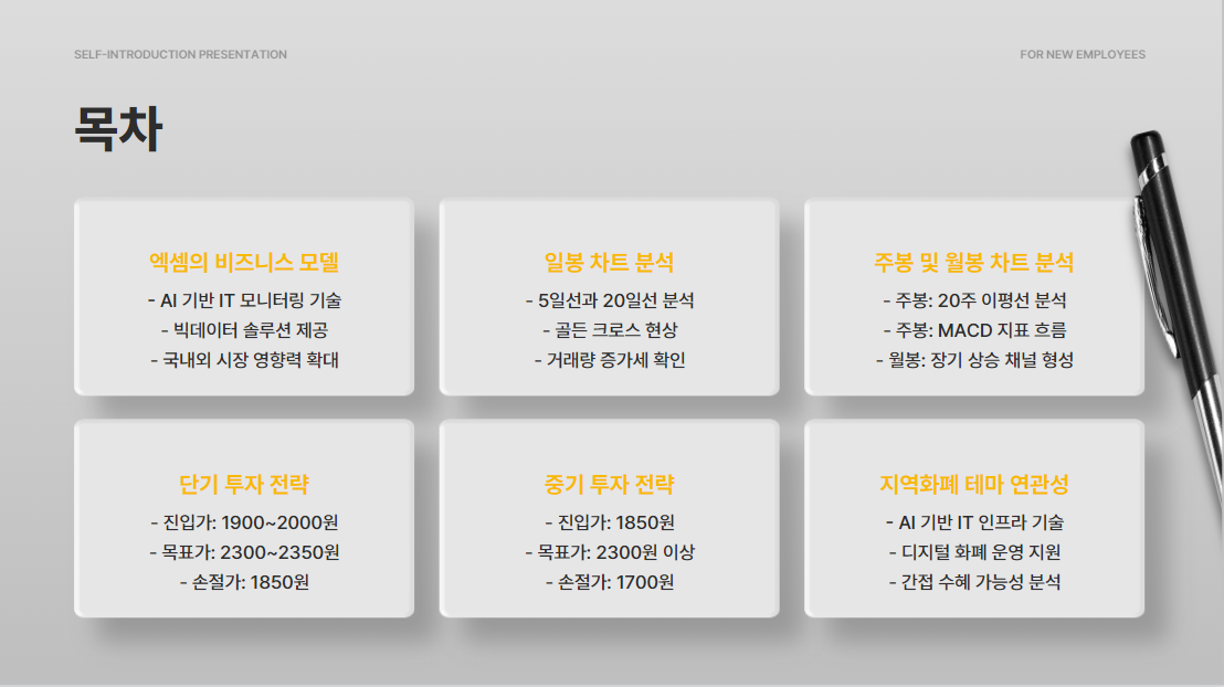 엑셈은 AI 기반 IT 인프라의 핵심 주자로, 데이터 관리 수요 확대와 함께 성장 잠재력을 보유한 종목이에요.