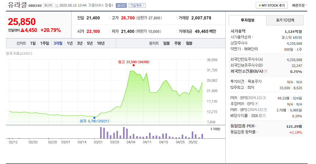 2025년 5월 12일 기준, 유라클은 24,300원까지 상승하며 시장에서 다시 주목받고 있습니다.
